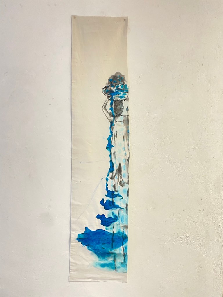 Nelle installazioni che porto avanti si intrecciano diversi linguaggi artistici: performance dal vivo, installazioni video-sonore, opere pittoriche, fotografie e testimonianze orali. Tutti questi elementi dialogano tra loro per ricostruire le memorie degli antichi gesti delle lavandaie, sospesi tra quotidiano e sacro, sempre intimamente legati all’acqua